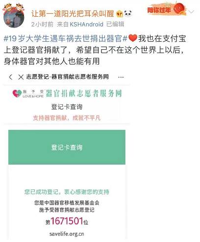 这些天使们,以“爱”的方式继续留在人间,网友不仅纷纷表达敬意,还晒出了自己的志愿登记证书♥♥♥