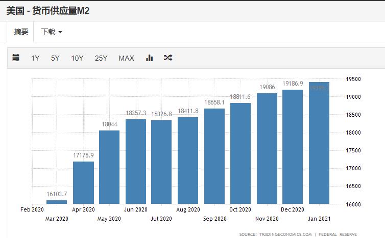 △2020年3月—2021年1月美国货币供应量(图片来源:Trading Economics)