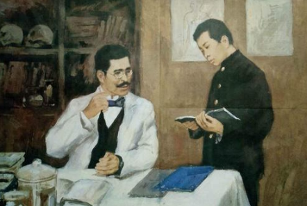 碑名出自藤野赠鲁迅照片上的亲笔题名