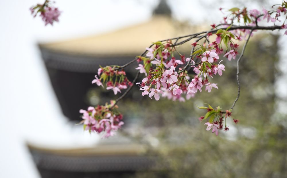 3月2日,武汉大学樱花初绽枝头。新华社发(曹海钢摄)