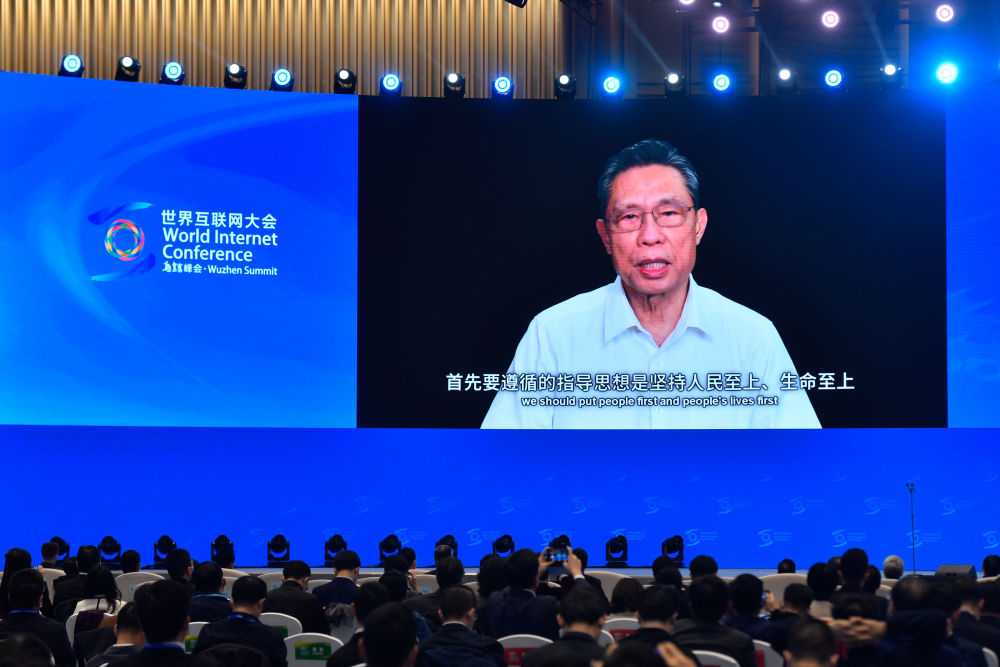 2020年11月23日,中国工程院院士钟南山在世界互联网大会·互联网发展论坛“数字经济与科技抗疫”主论坛上以视频形式发表演讲。(新华社记者 黄宗治 摄)