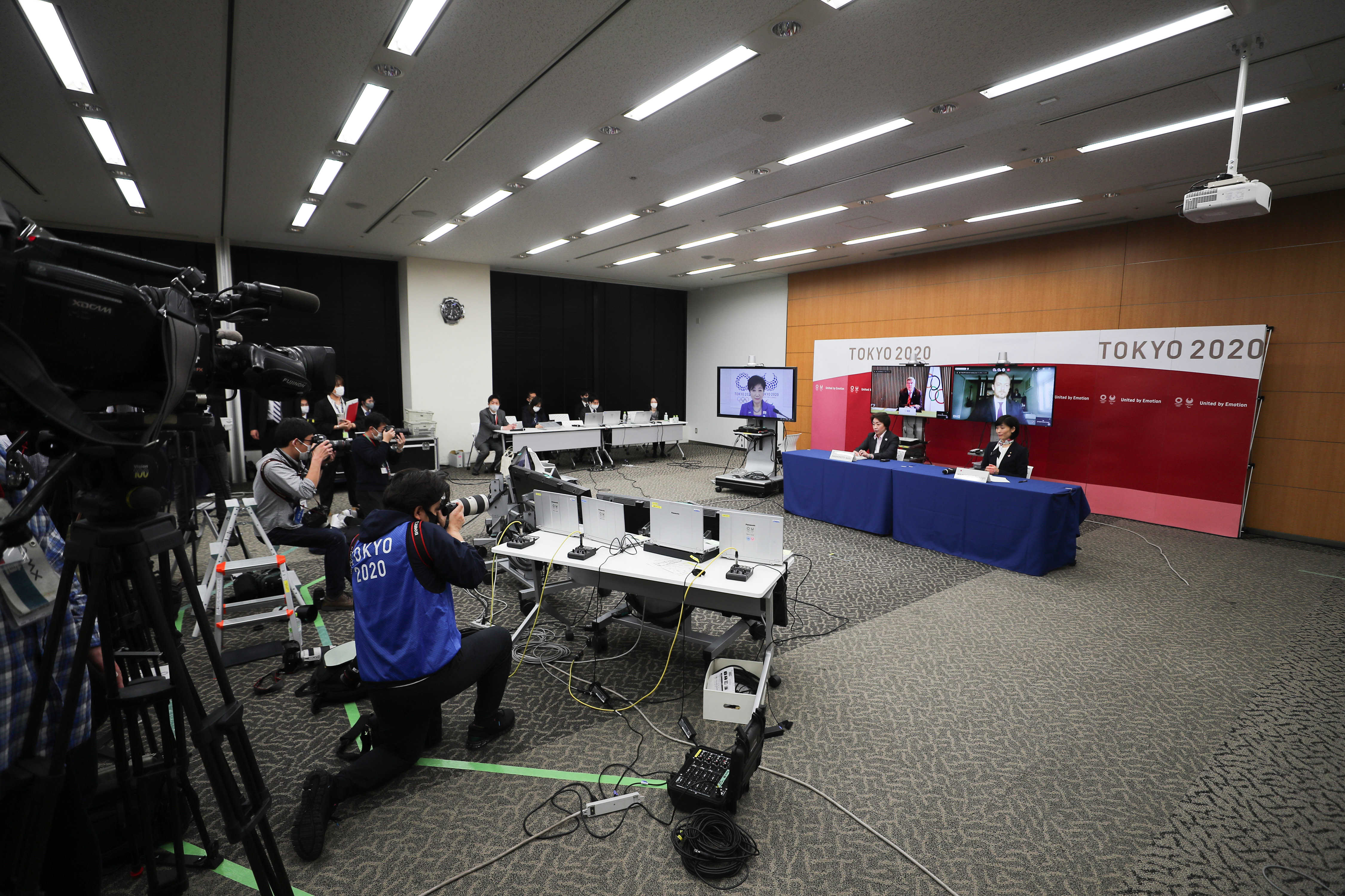 3月3日,东京奥组委举行五方视频会议现场。新华社记者杜潇逸摄