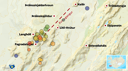 当地时间3月3日,冰岛国家广播电台和电视台(RUV)报道,在雷克雅尼斯半岛开始探测到地表以下的岩浆运动的迹象,该地区地震仍在继续。科学家认为,岩浆可能正在凯尼尔(Keilir)以南寻找一条通往地表的路线。