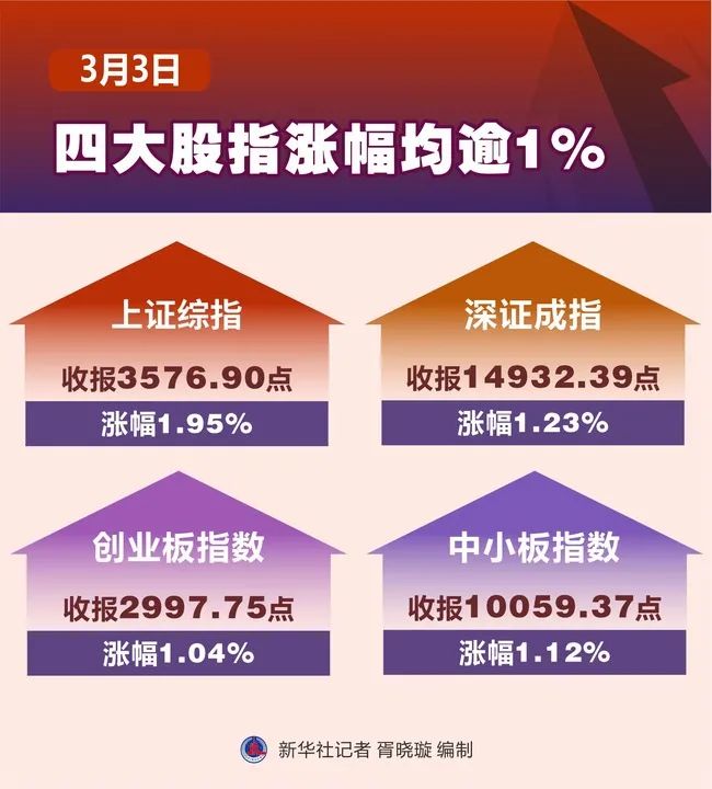 3日,沪深指数低开高走,四大股指涨幅均逾1%。