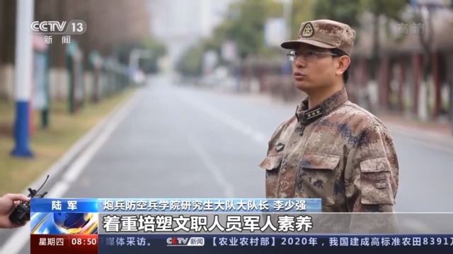 陆军炮兵防空兵学院研究生大队大队长 李少强:这次培训我们采取量化考评机制,重培塑文职人员的军人素养,在课程设置上突出军味、战味,突出文职人员思想观念定位转变,让他们尽快适应部队工作。