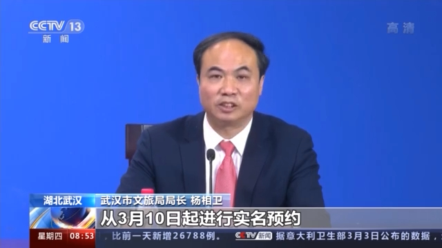武汉市文旅局局长 杨相卫:从3月10日起进行实名预约,预约成功后,凭本人身份证在指定日期免费入园游览33个景区景点。