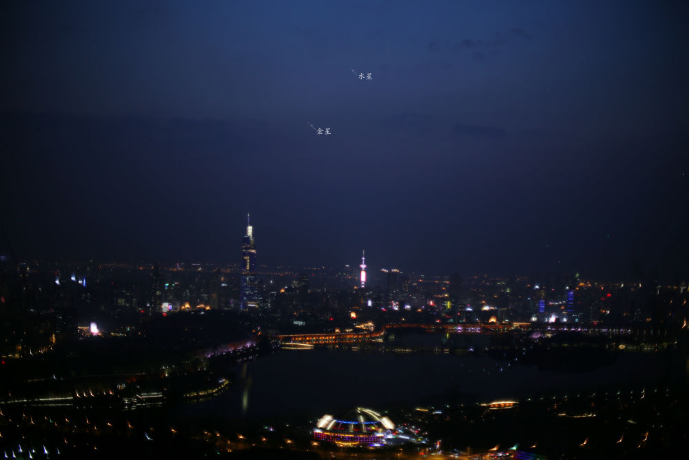 在2018年3月15日水星东大距前夕,南京天文爱好者协会许军3月13日在南京拍摄的水星和金星相聚的照片。