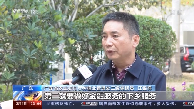 广东省农业农村厅种植业管理处二级调研员 江锦祥:主要是今年的天气情况,要注意合理科学,安排春耕用水,保证(秧苗)能够插下去,第二就要做好金融服务的下乡服务,选好品种播秧,还有要用新的技术,无人机那些各方面的技术,农机来加快春耕进度。
