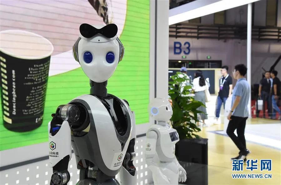 ▲世界机器人大会上展出的云端智能服务机器人。新华社发(任超 摄)