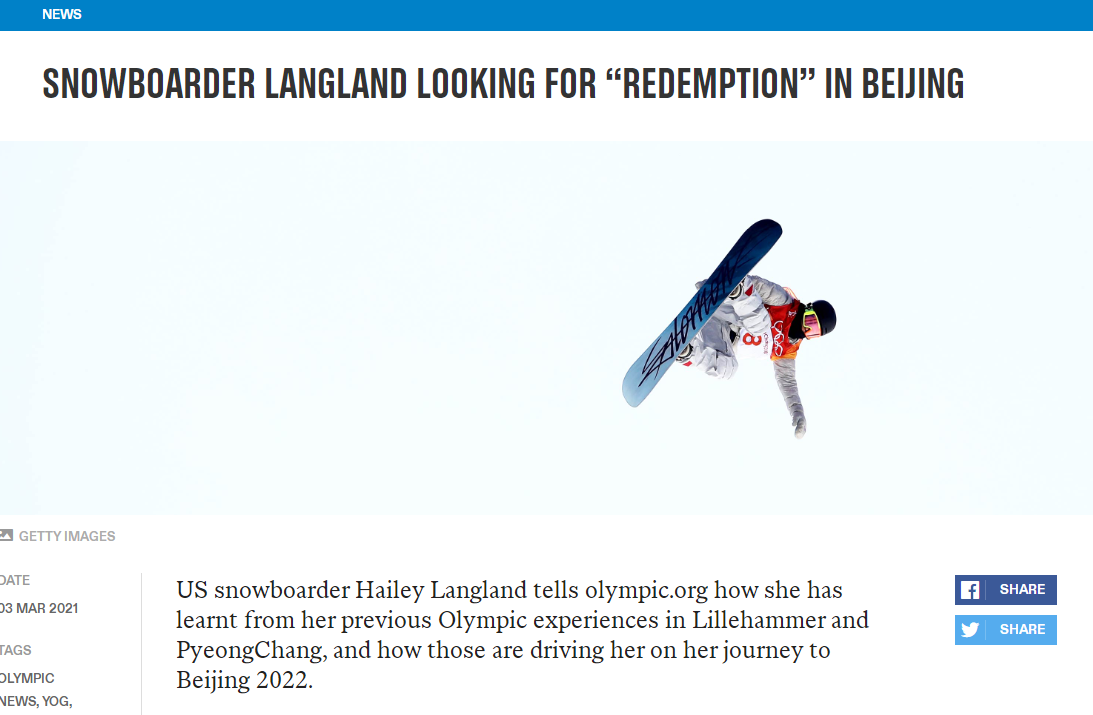 朗兰参加过2016年利勒哈默尔冬青奥会,17岁时代表美国参加了2018年平昌冬奥会。尽管在平昌只拿到第六的成绩,但今年20岁的她在女子单板滑雪大跳台和坡面障碍项目上已成长为世界顶级选手,在一些国际大赛中站上了领奖台。