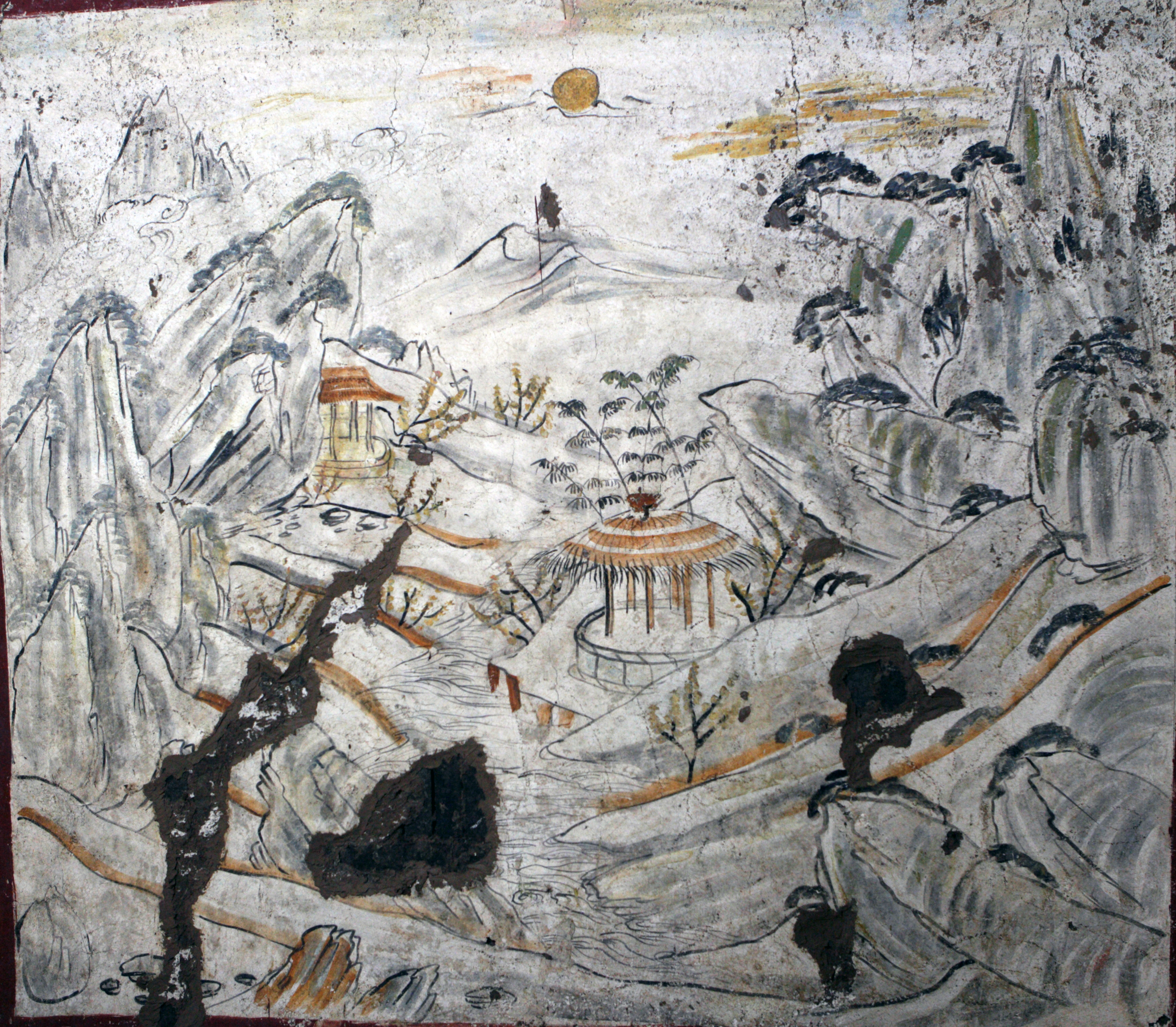 唐韩休墓中的山水图。 陕西历史博物馆供图