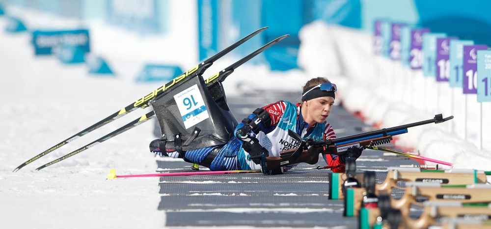 越野滑雪与射击相结合的项目。总比赛距离在6-15km之间,每圈2.0-2.5km,其间,运动员必须击中10m远的射击靶。每个分项都分为站姿、坐姿和视障3种类别。