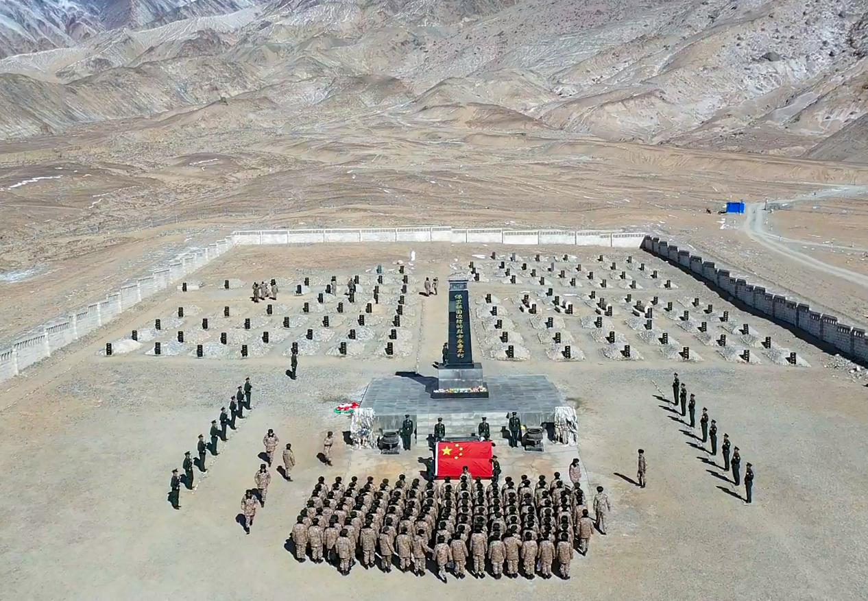 康西瓦烈士陵园位于喀喇昆仑腹地、海拔4000多米的雪山之间,这里长眠着卫国戍边牺牲的烈士。上午11时许,在雄壮的国歌声中,祭奠仪式开始。新兵们向烈士敬献花圈,在纪念碑前脱帽默哀,瞻仰烈士纪念碑,祭扫烈士墓。