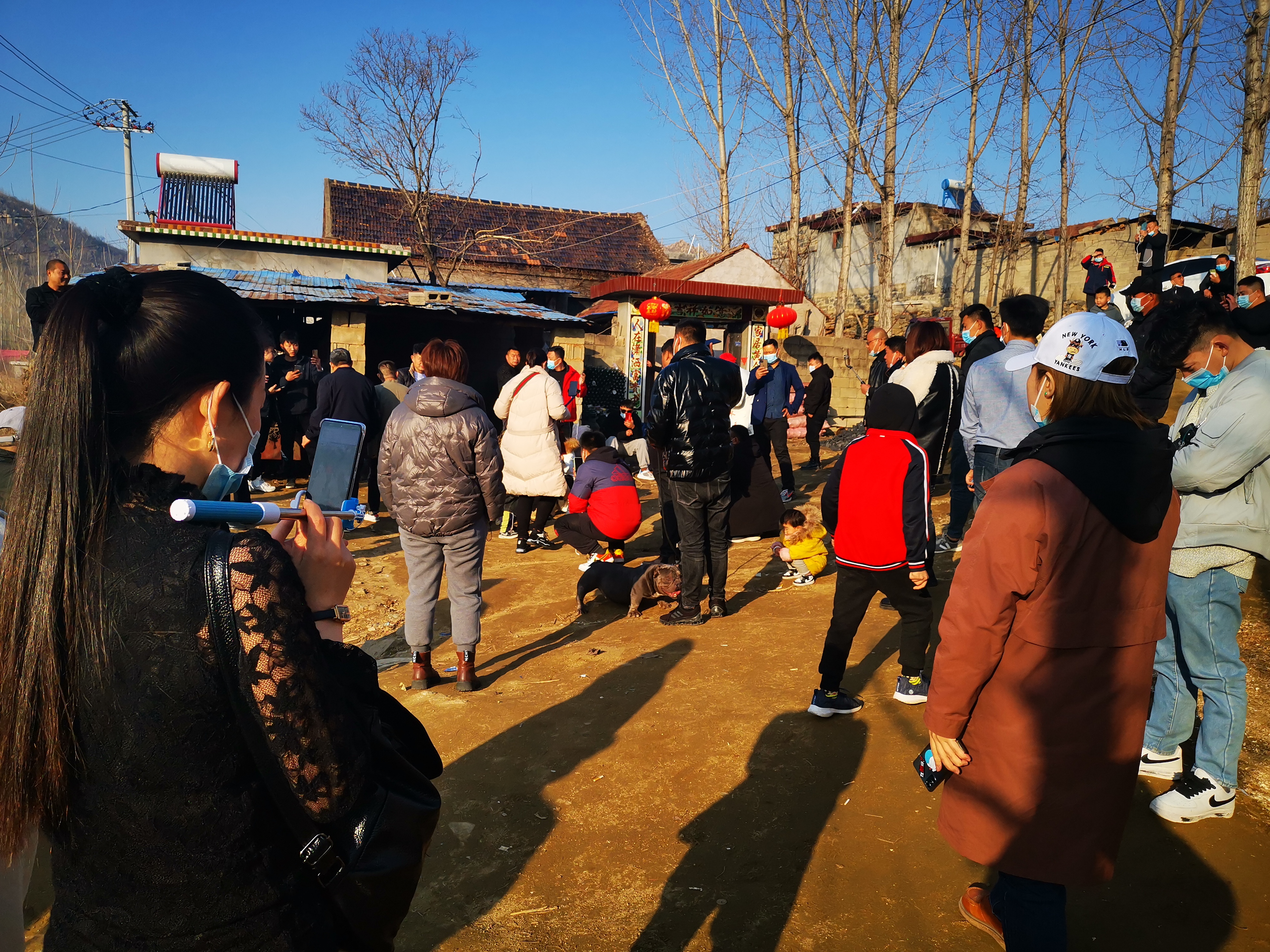 2月27日,众多网红和视频博主守在费县梁邱镇马蹄河村程运付家门口进行围观、直播。新华社记者贾云鹏摄