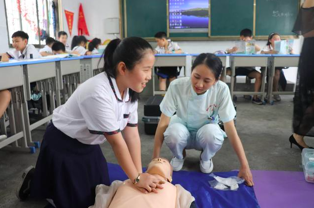 △湖南郴州,学生正在学习心肺复苏的操作