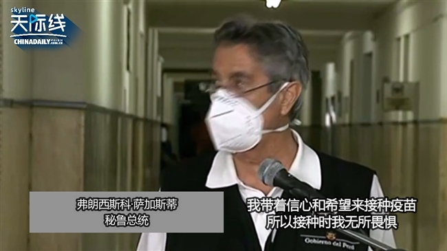 秘鲁总统弗朗西斯科·萨加斯在接种了中国疫苗后发表讲话表示,他对中国疫苗有信心,认为中国疫苗带来了希望,所以接种时无所畏惧。
