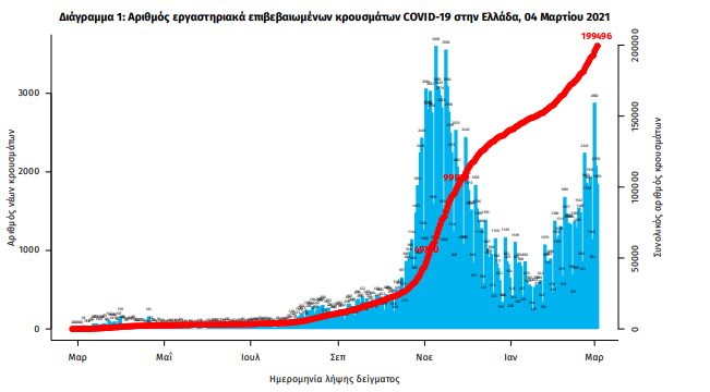 当地时间3月4日,希腊国家公共卫生组织消息,截止到当日15时,在过去的24小时内,希腊新增新冠肺炎确诊病例2219例,这已经是希腊连续三天日新增病例破2000例,累计确诊199496例,累计死亡6632例。(总台记者 李冠男)