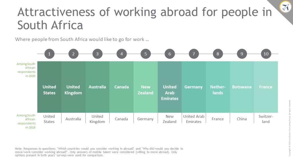 该研究有来自190多个国家共20.9万人参与,其中有1421名南非人参与。调查结果表明,新冠肺炎疫情降低了人们在海外工作的兴趣,同时更倾向于前往防疫较好的国家。目前,只有59%的南非人愿意去其他国家工作,低于2018年的72%。美国仍然是南非人移居的第一大目的地,随后是英国、澳大利亚和加拿大,新西兰和阿联酋也比2018年更受欢迎。(总台记者 曲晟)