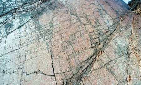 昭觉县三比罗嘎恐龙足迹,位于当地一处铜矿矿区内。