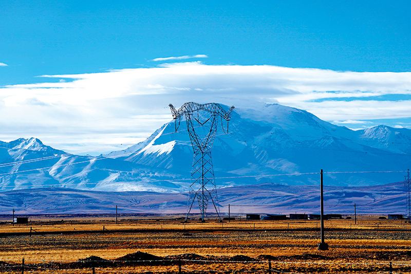 位于西藏阿里地区普兰县的西藏阿里与藏中电网联网工程输电铁塔(2020年11月29日摄) 詹彦摄/本刊