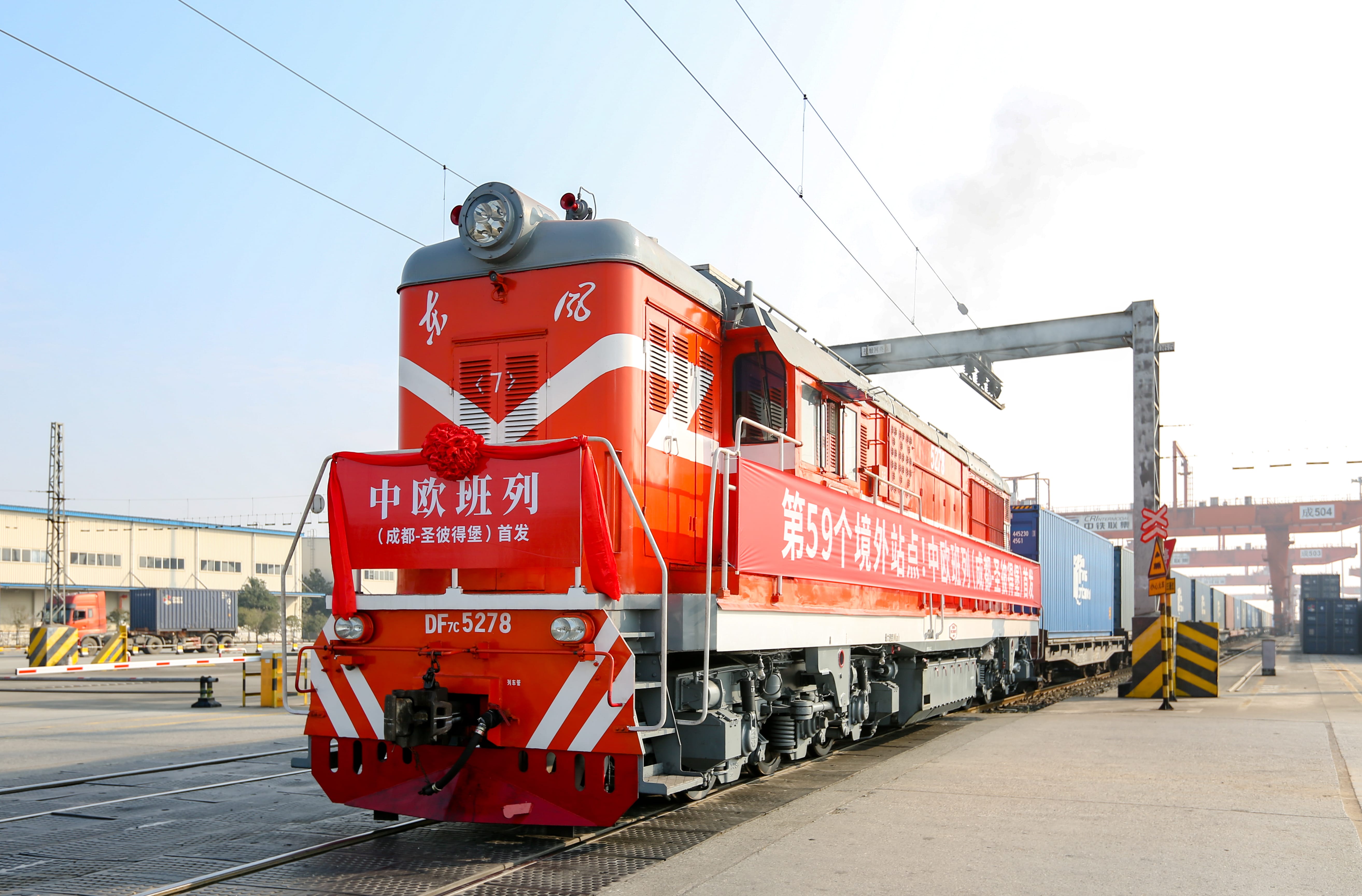 2月21日,成都至俄罗斯圣彼得堡的首趟中欧班列从成都国际铁路港驶出。新华社发(成都国际铁路港管委会供图)