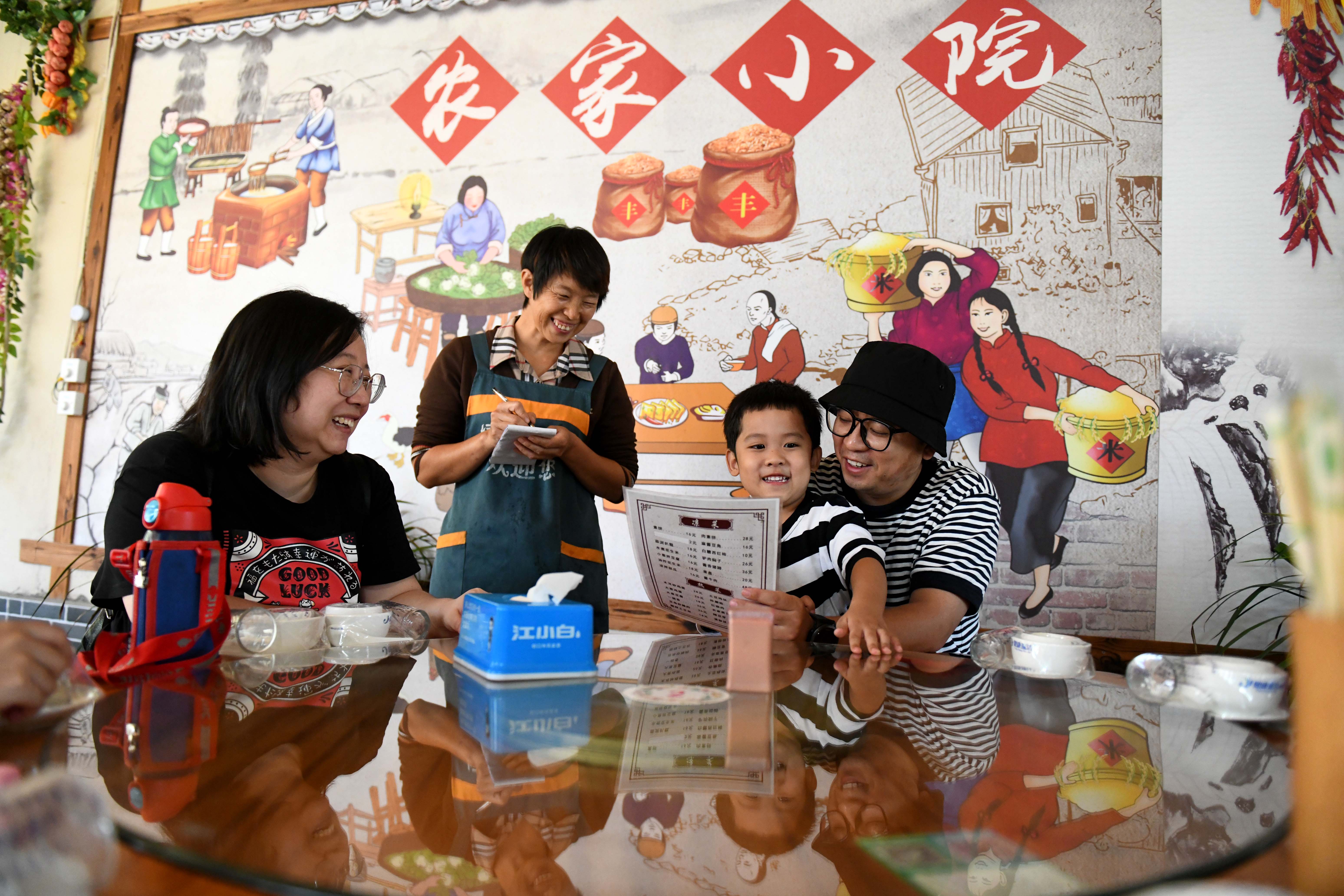 2020年9月16日,游客在石家庄市平山县岗南镇李家庄村一户农家乐里点菜。 新华社发(陈其保 摄)