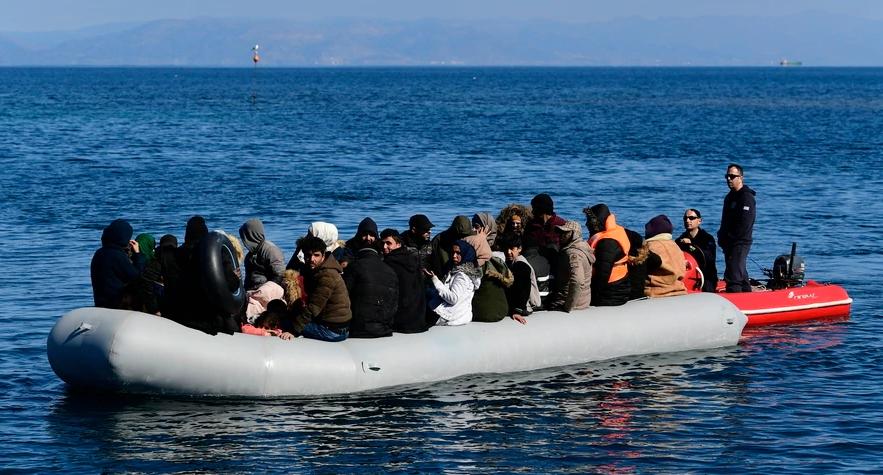 △2020年3月2日,从土耳其穿越爱琴海的难民抵达希腊莱斯沃斯岛(图片来源:路透社)