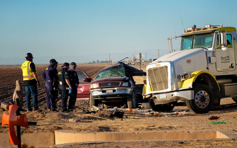 △3月2日,美国加州霍特维尔一辆偷渡车发生车祸(图片来源:圣地亚哥联合论坛报)