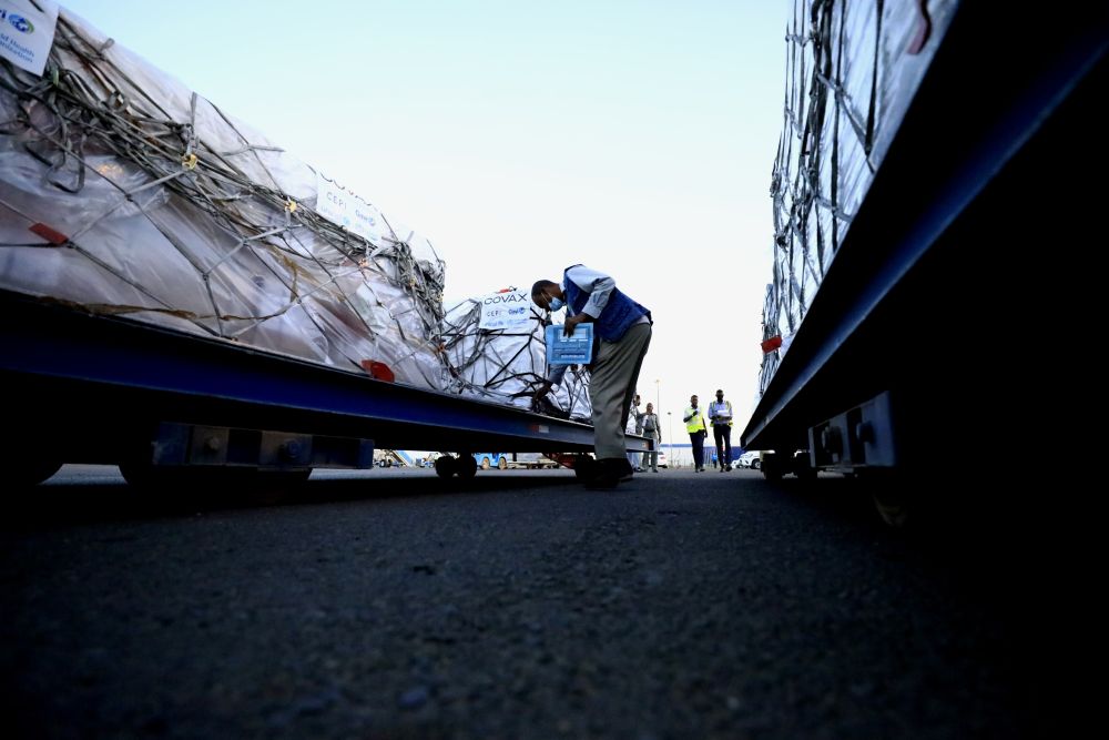 图为2021年3月3日,工作人员在苏丹喀土穆国际机场检查通过世界卫生组织主导的“新冠肺炎疫苗实施计划”(COVAX)收到的新冠疫苗。新华社发(穆罕默德·海德尔摄)