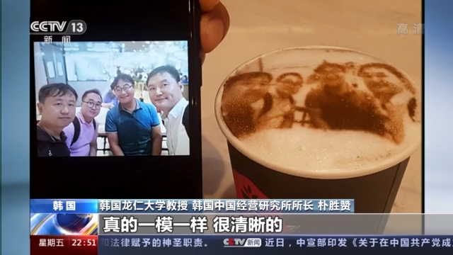 韩国龙仁大学教授 韩国中国经营研究所所长 朴胜赞:当时服务员对我说:先生,你想尝尝3D打印咖啡吗?然后咖啡真的就出来了,真的一模一样很清晰的。跟我一起去的很多师弟,还有很多韩国企业说:真是百闻不如一见!
