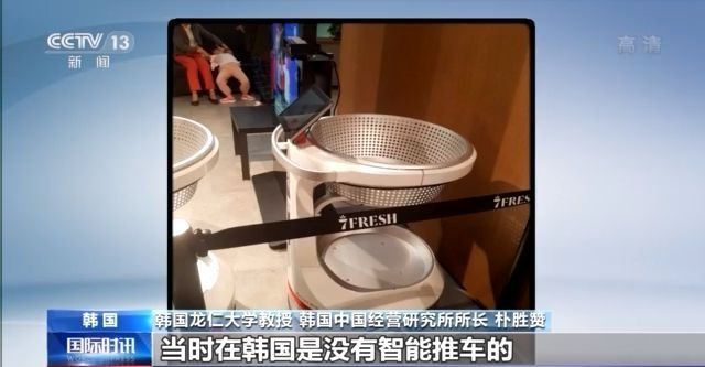 韩国龙仁大学教授 韩国中国经营研究所所长 朴胜赞:当时在韩国是没有智能推车的。现场买了水果,水果里面的二维码一扫,上面的屏幕上这个水果的(产地)分布情况、糖度等等有关信息就蹦出来、调出来了,一起去的很多韩国企业都大吃一惊。