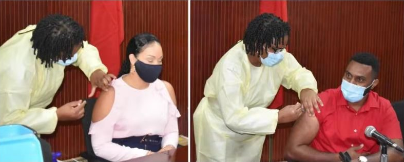 △多米尼克政要现场接种疫苗(图片由驻多米尼克使馆提供)