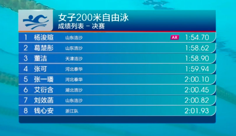 杨浚瑄打破女子200米自由泳亚洲纪录!