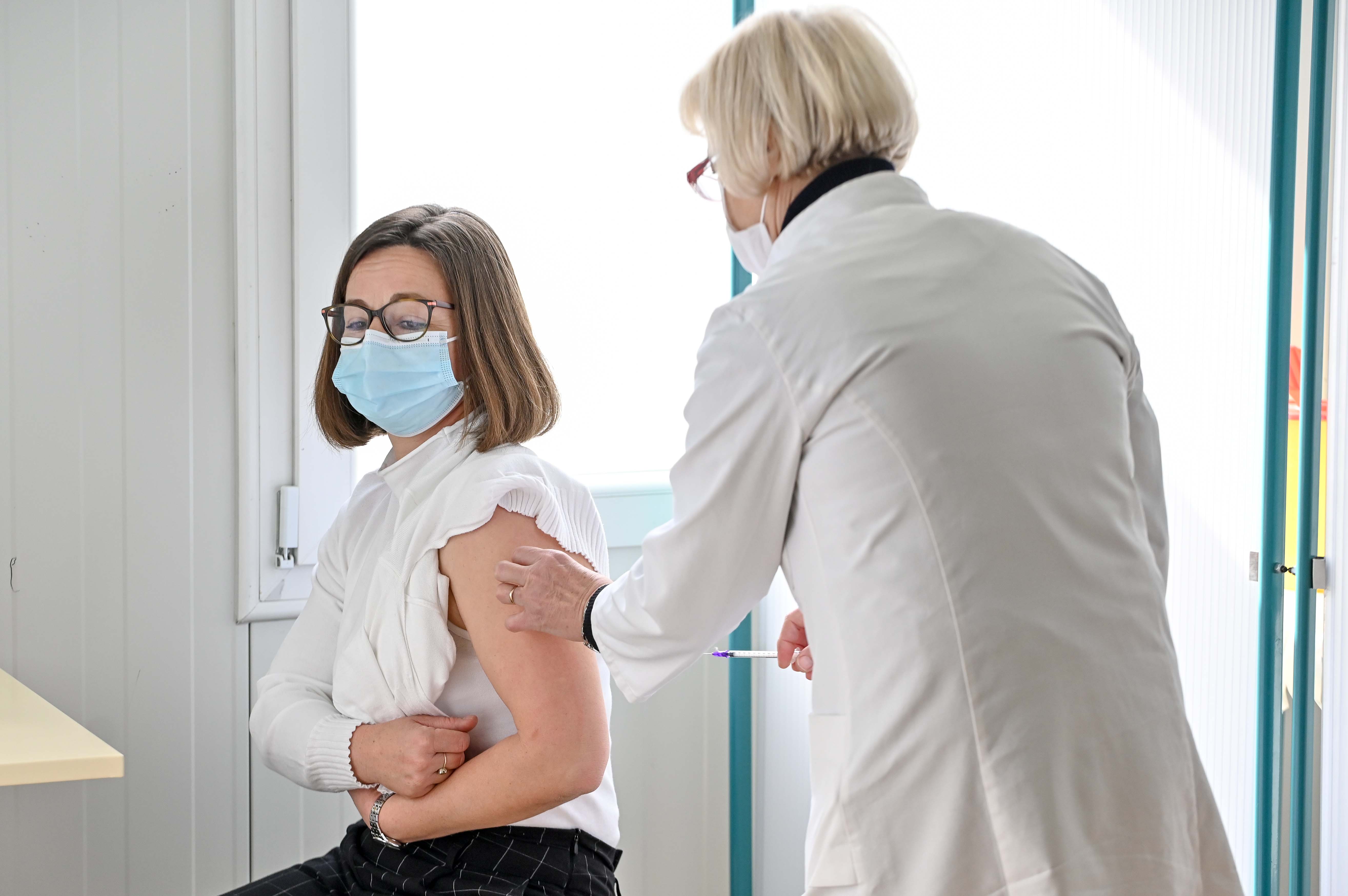 2月17日,在北马其顿斯科普里,一名女子接种新冠疫苗。新华社发