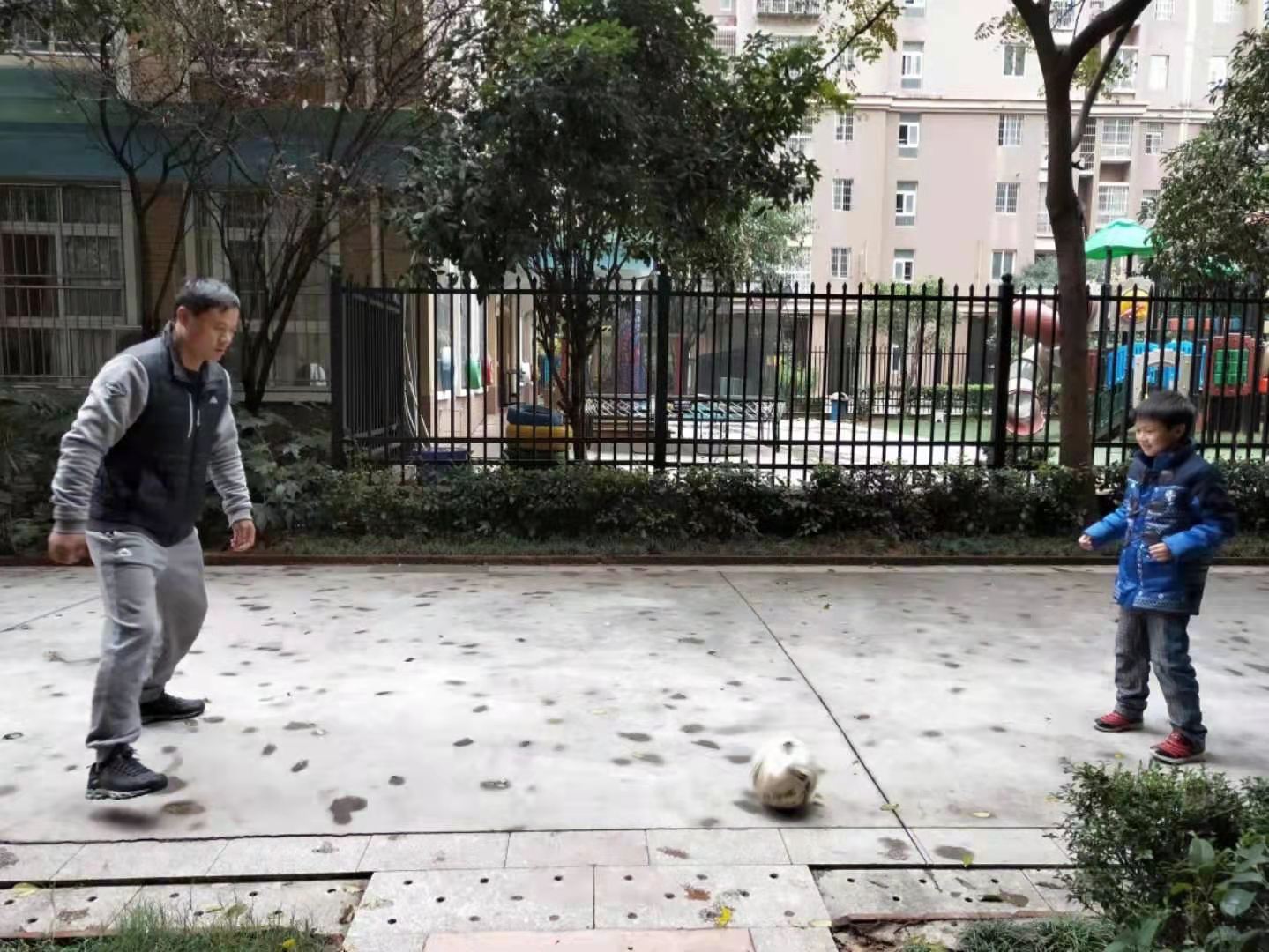 在3月4日“无书面作业日”当天,一位家长带着孩子踢足球。(家长供图)