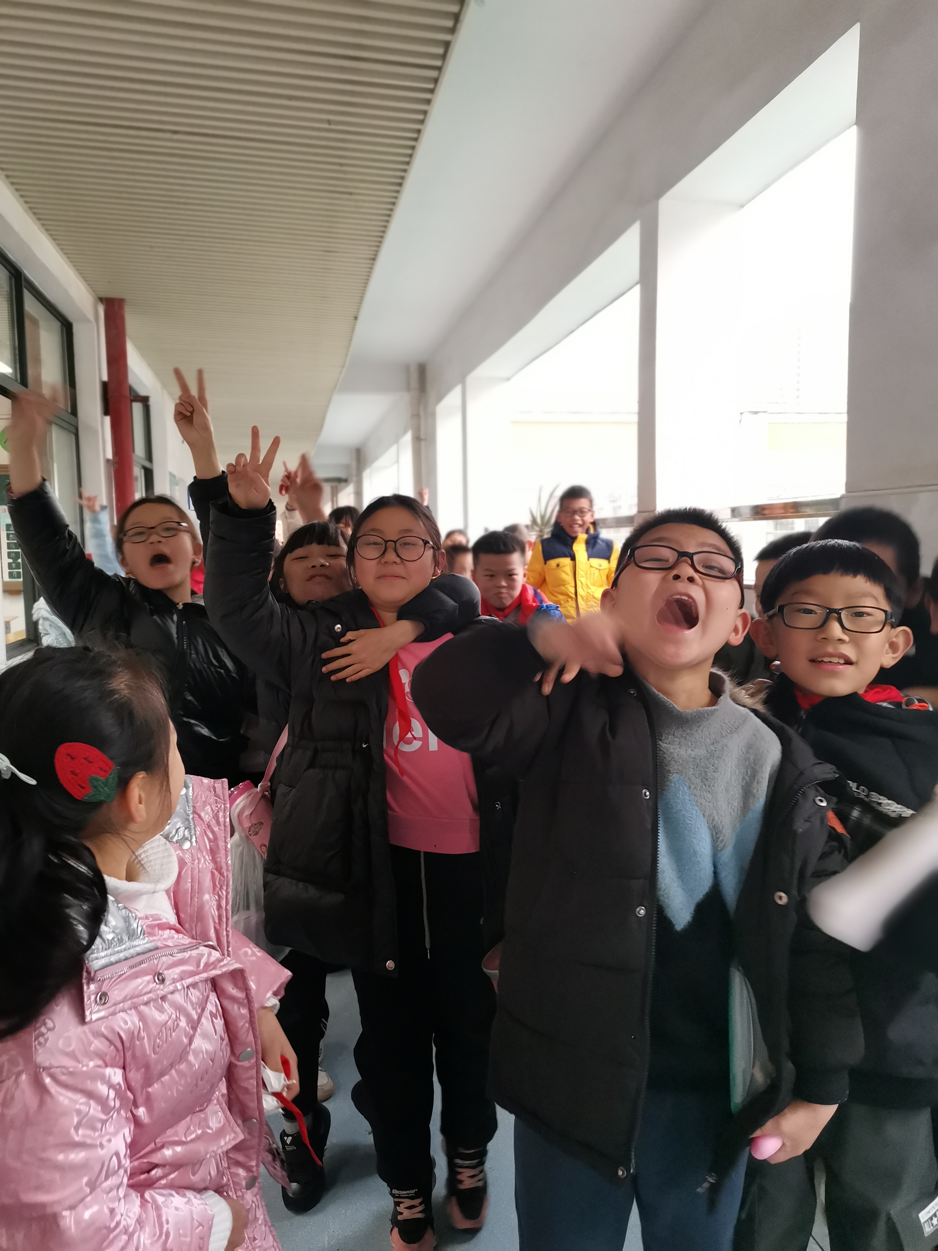 3月4日,长沙市芙蓉区育英西垅小学放学时,不用背书包回家的孩子们兴奋不已。(育英西垅小学供图)