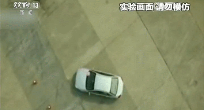 △从30米高空坠下的水球能将钢筋铁骨的汽车砸出深坑