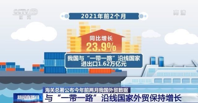 海关统计数据显示,今年前两个月,我国与“一带一路”沿线国家进出口合计1.62万亿元,同比增长23.9%;其中,我国对泰国、阿联酋、波兰进出口分别增长35.6%、33.3%和51.4%。
