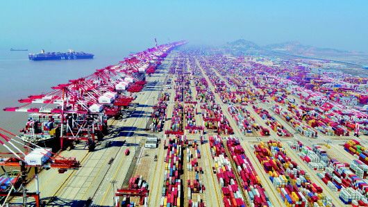 繁忙的上海洋山港集装箱码头(资料片)。新华社记者丁汀摄