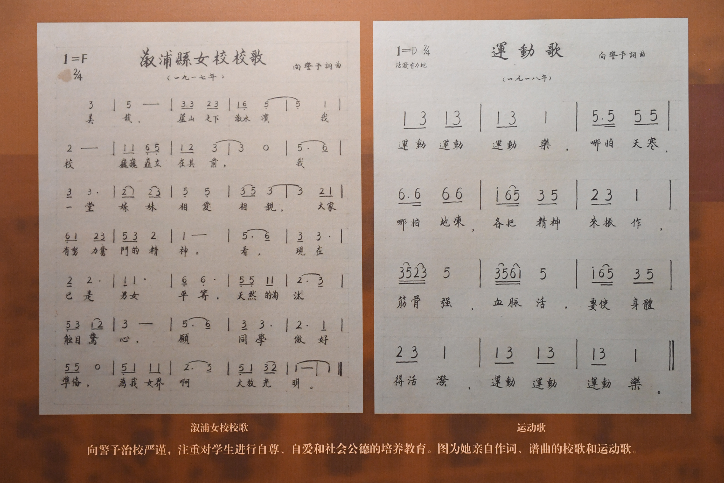 这是向警予作词、谱曲的两首歌曲,里面写道: