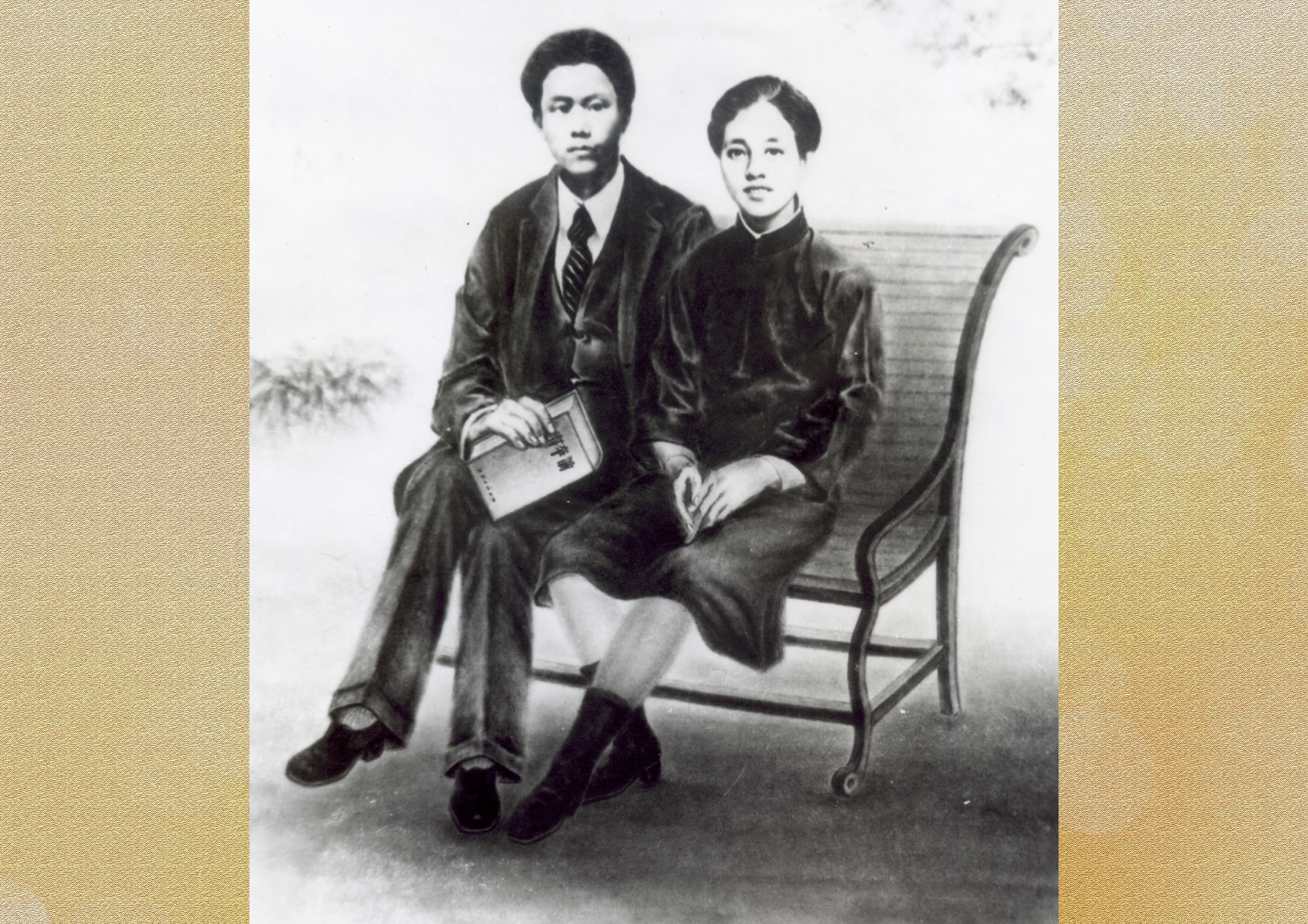 拍摄结婚照时,这对革命伉俪相依而坐
