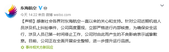 ·网传机长与乘务长在飞机落地前50分钟发生互殴,机长在客舱将乘务长手打骨折,乘务长把机长门牙敲掉半颗,东海航空:涉事人员停止工作。