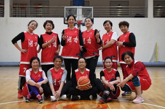 长沙有一支湖南“飞跃”女子篮球队,共有18名队员,平均年龄60岁,最年长的65岁。