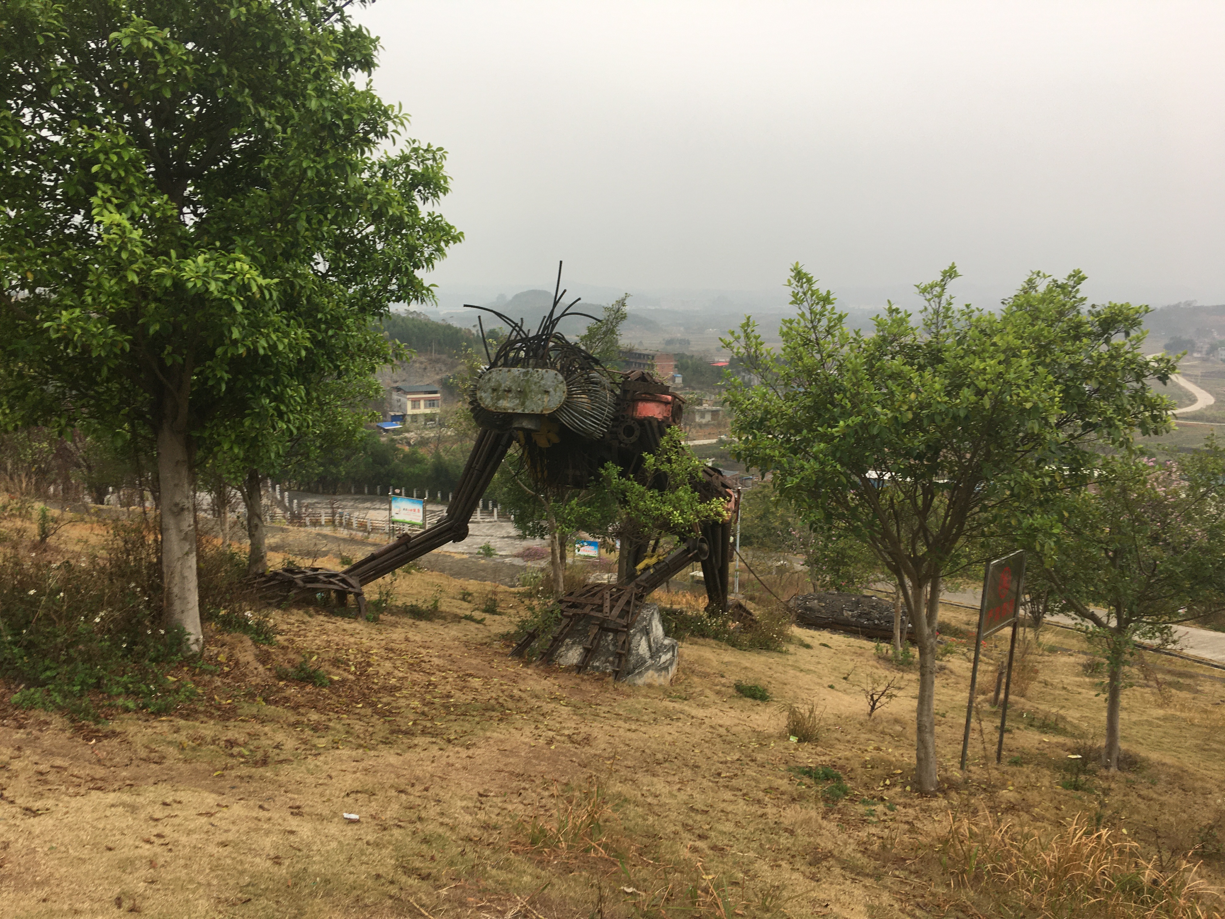 图为合山国家矿山公园里兰片区中由废旧材料搭成的人力拉煤雕塑。新华社记者 孙一 摄
