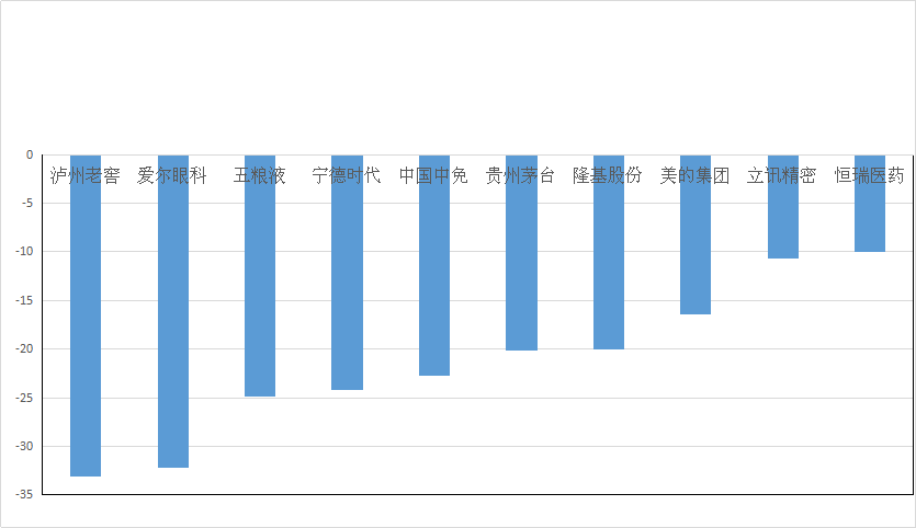 节后部分基金重仓股跌幅(%)(2月18日-3月5日)数据来源:同花顺