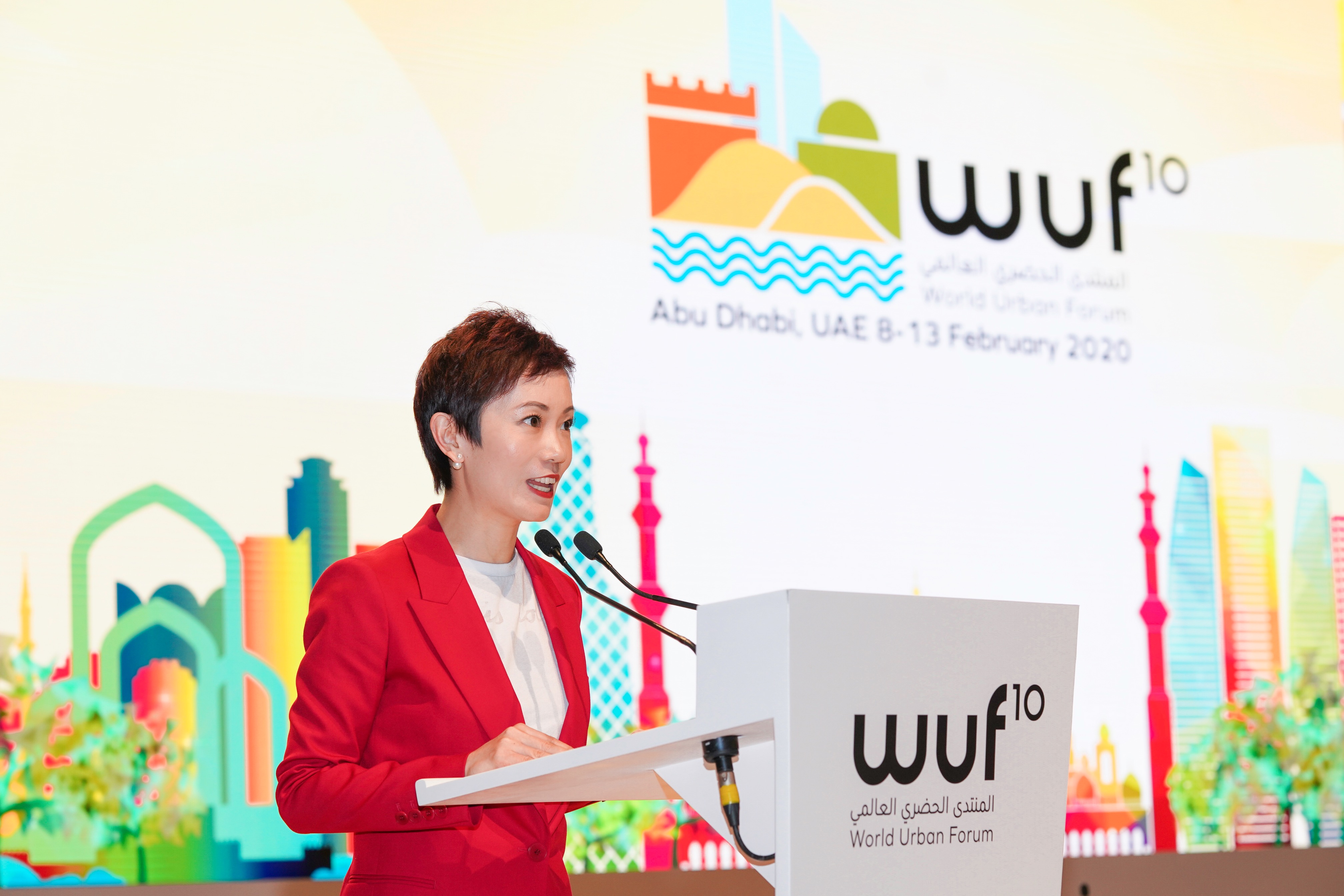 钟爱短发的上海某跨国机构负责人庞洁在阿布扎比主持国际会议。受访者供图