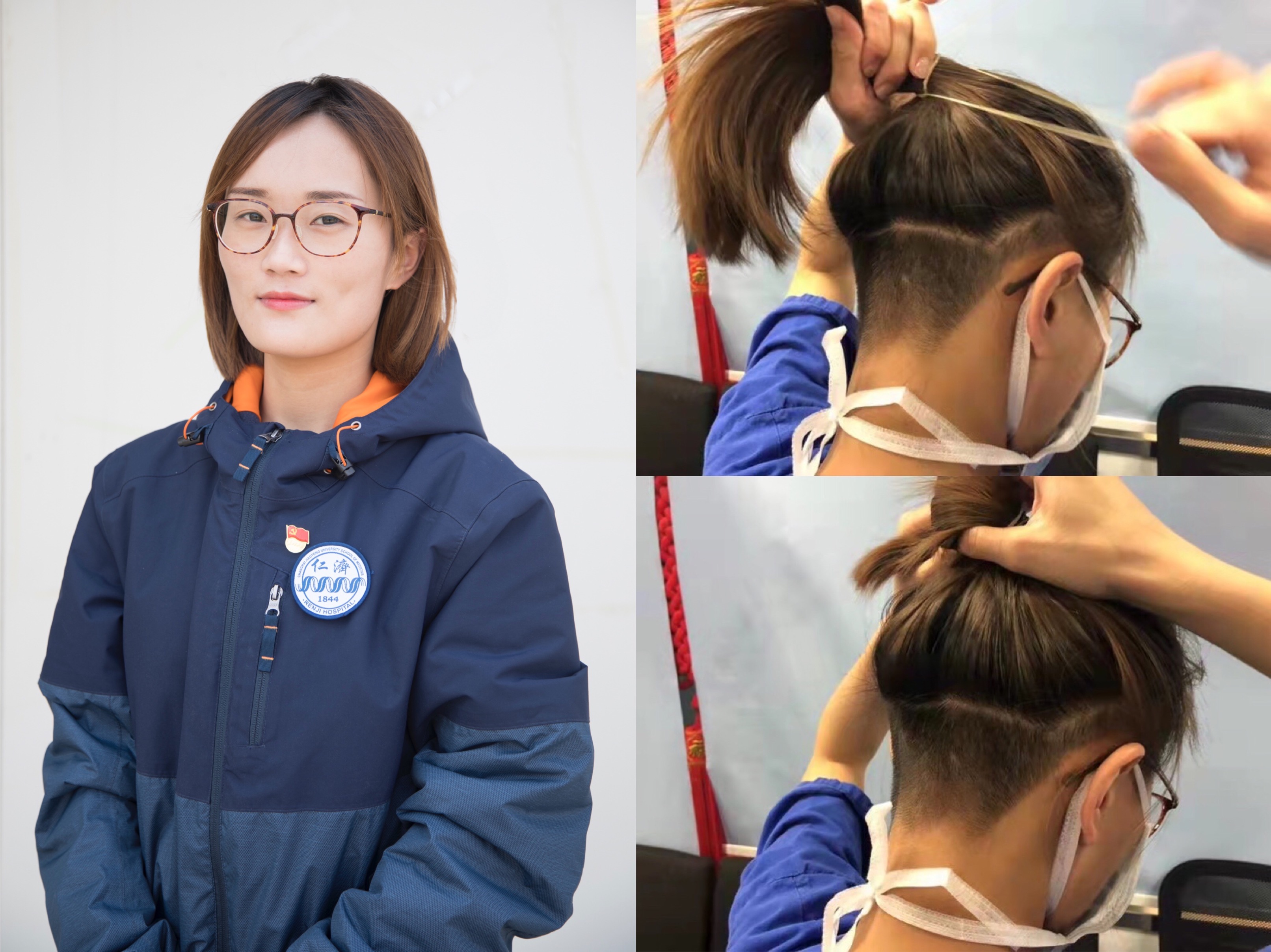 临行前,为做好个人防护,确保万无一失,护士们排队理发。理发师为戴倩原来的“丸子头”进行了新的设计,将后脑勺下半部分的头发剃去,这样连续护理病人时方便打理,同时理发师保留了头顶部的头发,长度中等偏短,扎起来方便,也相对美观。