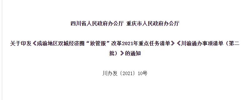 3月8日,重庆市人民政府办公厅和四川省人民政府办公厅联合发布《川渝通办事项清单(第二批)》清单。