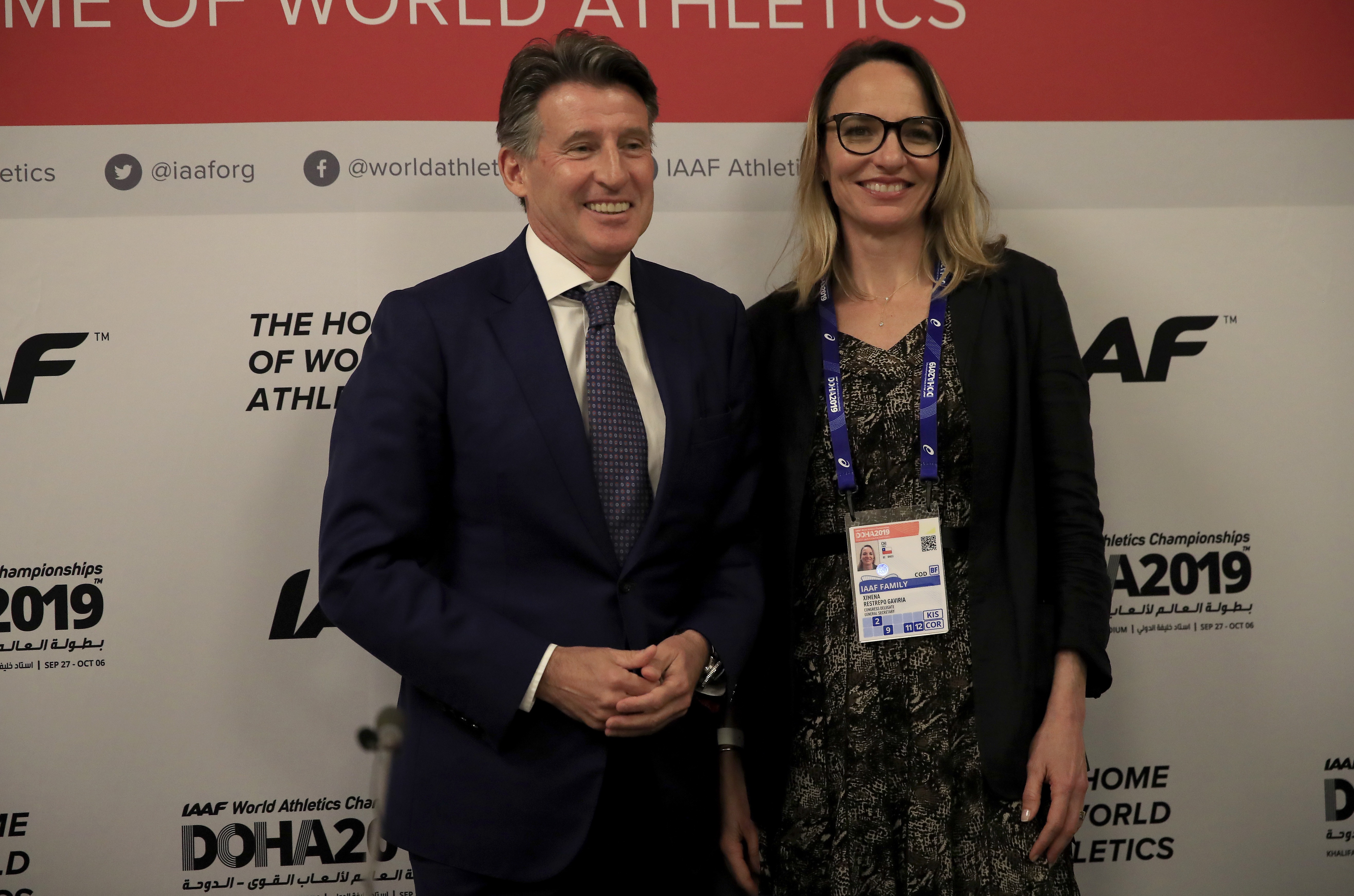 世界田联主席塞巴斯蒂安·科(左)与世界田联选举出的第一位女性副主席希梅娜·雷斯特雷波。世界田联供图