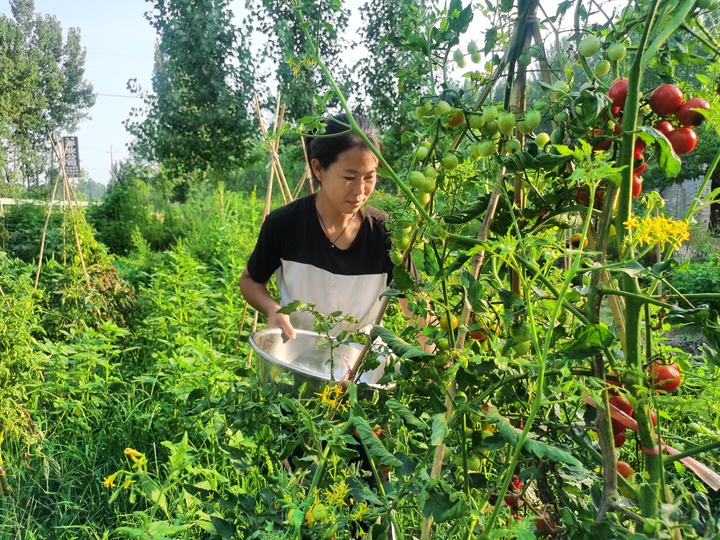 武佳佳在自家菜地里采摘蔬菜。 新华社记者 李紫薇 摄